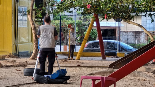 Nesse projeto foi realizada a delimitação do sítio arqueológico, na qual se utilizou a técnica de investigação adaptada, que consistiu na realização de caminhamentos sistemáticos na área da pesquisa e seu entorno imediato, aliadas a execução de transectos de amostragem com traçado em linhas organizadas radialmente. Por tratar-se de uma área com muitos elementos antrópicos, as linhas de poços-teste acompanharam as limitações impostas por esses elementos, e seguiram de forma orgânica as informações arqueológicas que se apresentaram no momento da pesquisa.